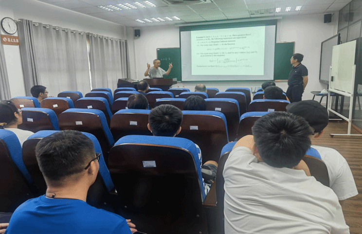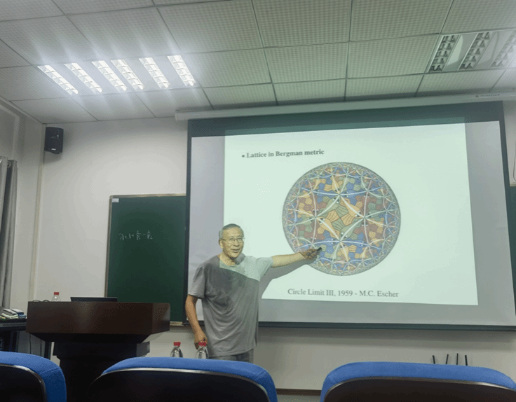 赵如汉教授首先介绍了单位球上关于正Borel测度的Berezin变换与关于正Borel测度的Toeplitz算子的最新进展,并用M.C.Escher的一幅画形象地诠释了单位球上Bergman度量,然后介绍了其与合作者在Berezin变换与Toeplitz算子的最新研究成果,利用单位球上经典的度量球以及覆盖引理等工具说明了正Borel测度的Berezin变换的有界性(紧性)与正Borel测度诱导的Toeplitz算子的有界性(紧性)的等价性,同时用Bergman-Carleson测度(消失的Bergman-Carleson测度)给出其有界性(紧性)的特征刻画。讲座结束后,他与师生们交流互动。赵如汉教授的学术报告有助于促进海角社区