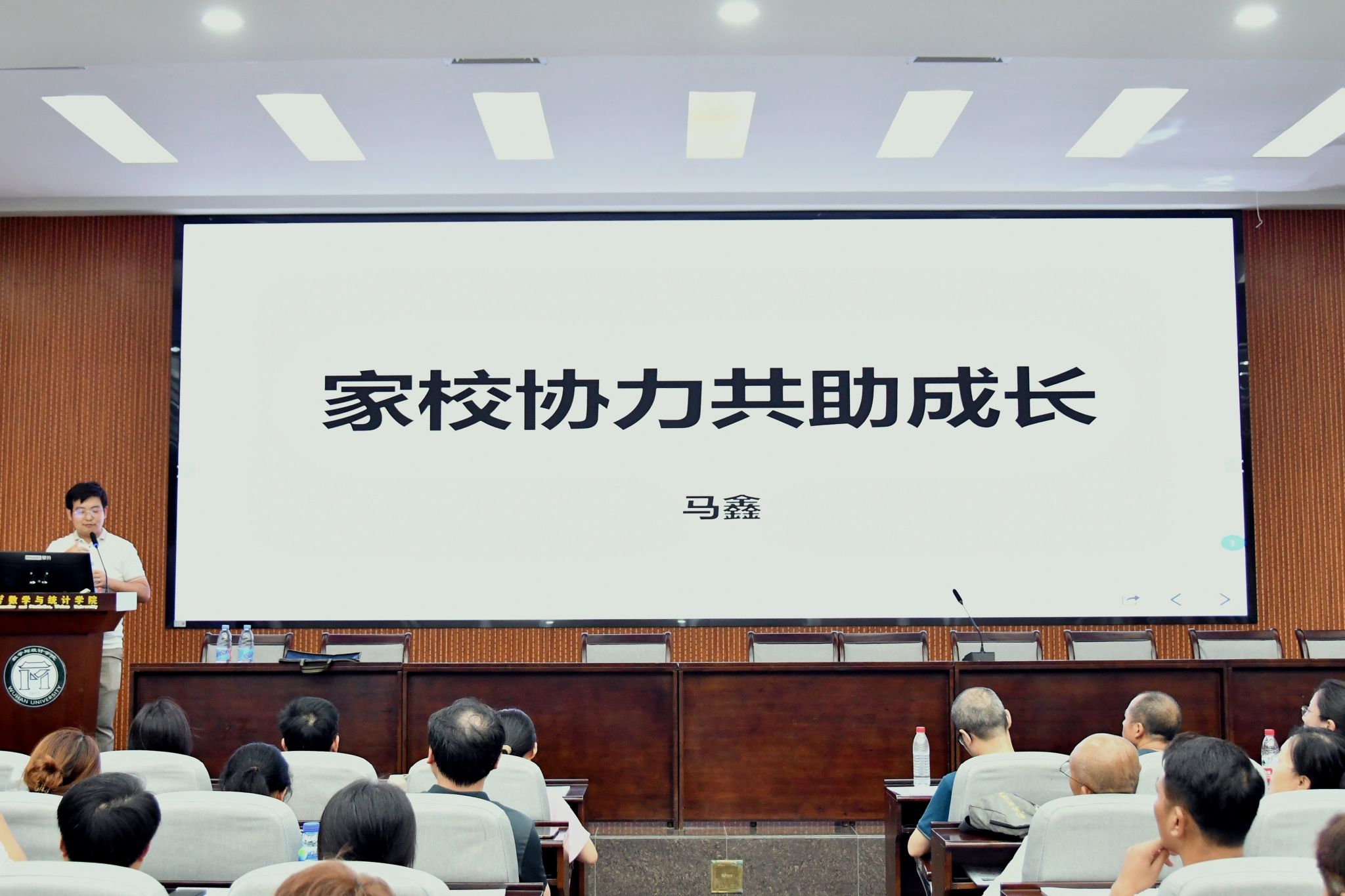 �6�30分,我院2023级新生家长见面会在数学会堂举行。武汉大学心理中心马鑫博士应邀为新生家长进行大学生心理健康教育讲座。他指出,家长们要做孩子成长的促进者,培养孩子的自理能力,正确看待自己的相对平庸,避免因心理落差造成焦虑等困扰;树立明确的目标,在大学的学习中逐渐找寻自己人生的方向;合理地面对来自人际关系的困扰;在忙碌的学习生活中降低自己的压力�