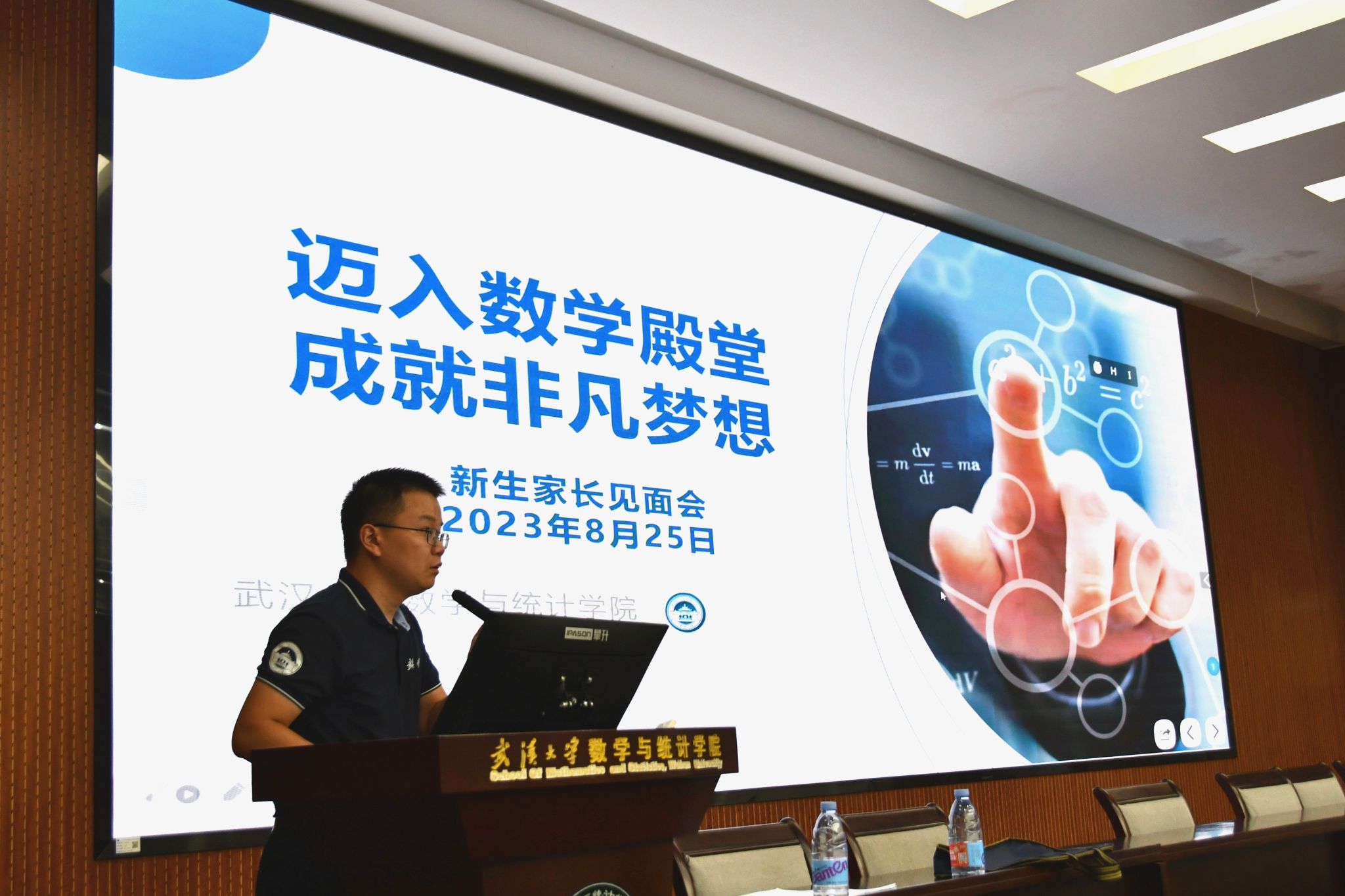 最后,党委副书记汪思明上台介绍我院学生管理和数学学子的职业发展。他分别介绍了学院为2023级本科生配备的班级导师和辅导员老师,并展示了我院本科毕业生去向分布图和数院学子的职业发展路径,倡导家长们家校协同,做好人才培养工作�
