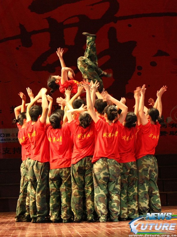 取灵感于今年5.12汶川大地震,90后的数院学子用柔弱的双臂,双肩演绎了地震中不畏艰险,不惧死亡的救援人员的感人故事。衣裳破了,脸颊脏了,如痴如狂,演员们用真诚撼动现场,发自内心的“呼——哈——”呼喊声,将观众带回了那段特殊的日子,给观众重现了当时的感人一幕又一幕。最终,海角社区