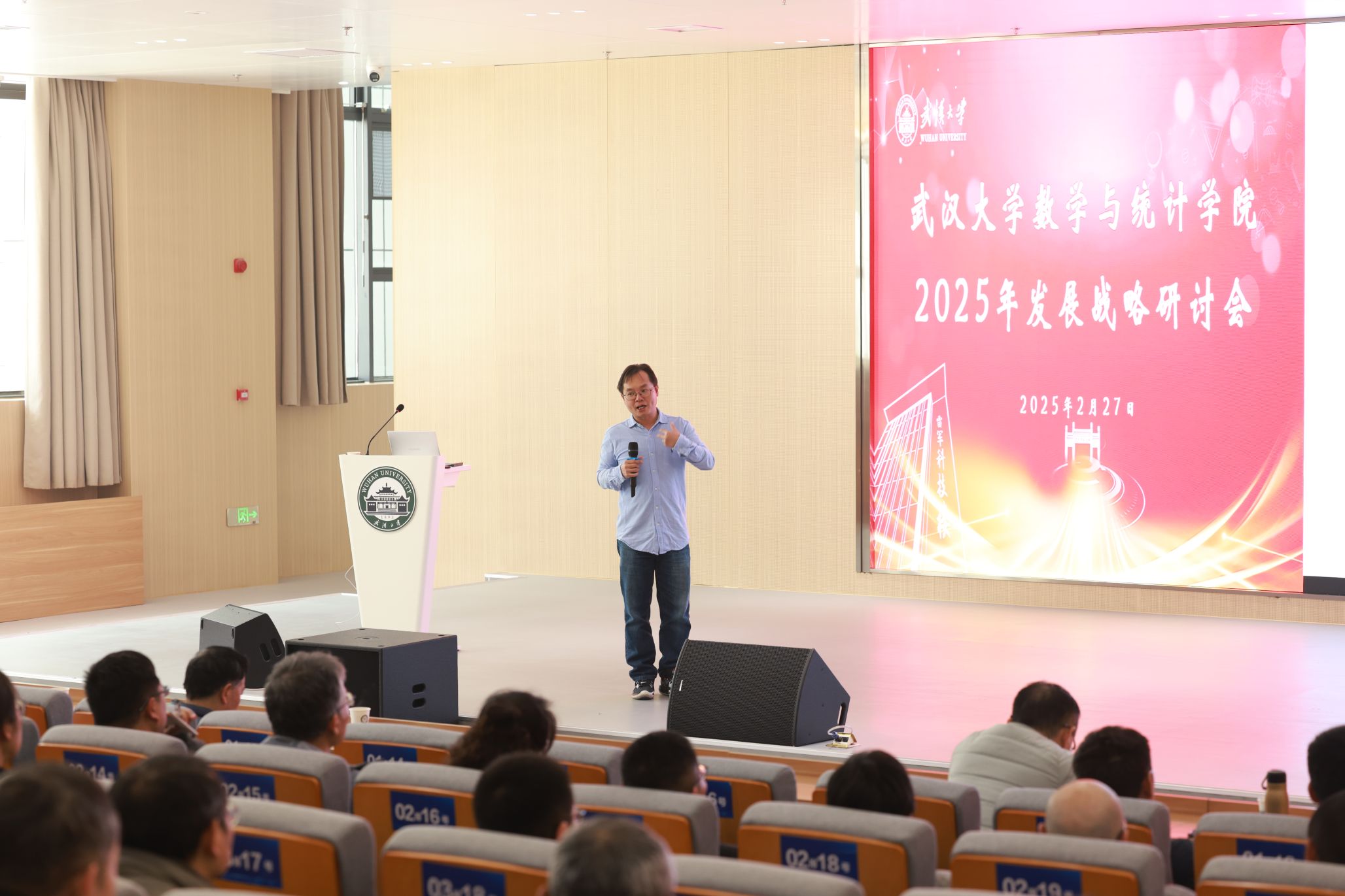 范辉军聚焦学院改革发展的重点难点问题作报告。他深入分析了武汉大学数学学科现状,系统介绍了学院2025年的工作思路,并对2025年的重点工作进行了全面部署。他传达了学校2025年发展战略研讨会会议精神,从科学研究、人才培养、社会影响力和行政服务等方面提出了学院的内在发展目标,并对学院人才队伍建设、研究团队讨论班建设、Colloquium建设、“三个‘1’”课程体系规划、数学文化建设与数学实验室建设以及行政办公室职能全面优化调整等重点工作进行了细致阐述。他强调,2025年是“十四五”规划收官之年,是“十五五”启动教育强国建设全面布局、高位推进之年,是贯彻落实学校第十次党员代表大会精神的开局之年,也是学校的“深化改革年”,我们要锚定目标、攻坚克难,全面深化改革,抓好下一个五年征程的开局起步。
