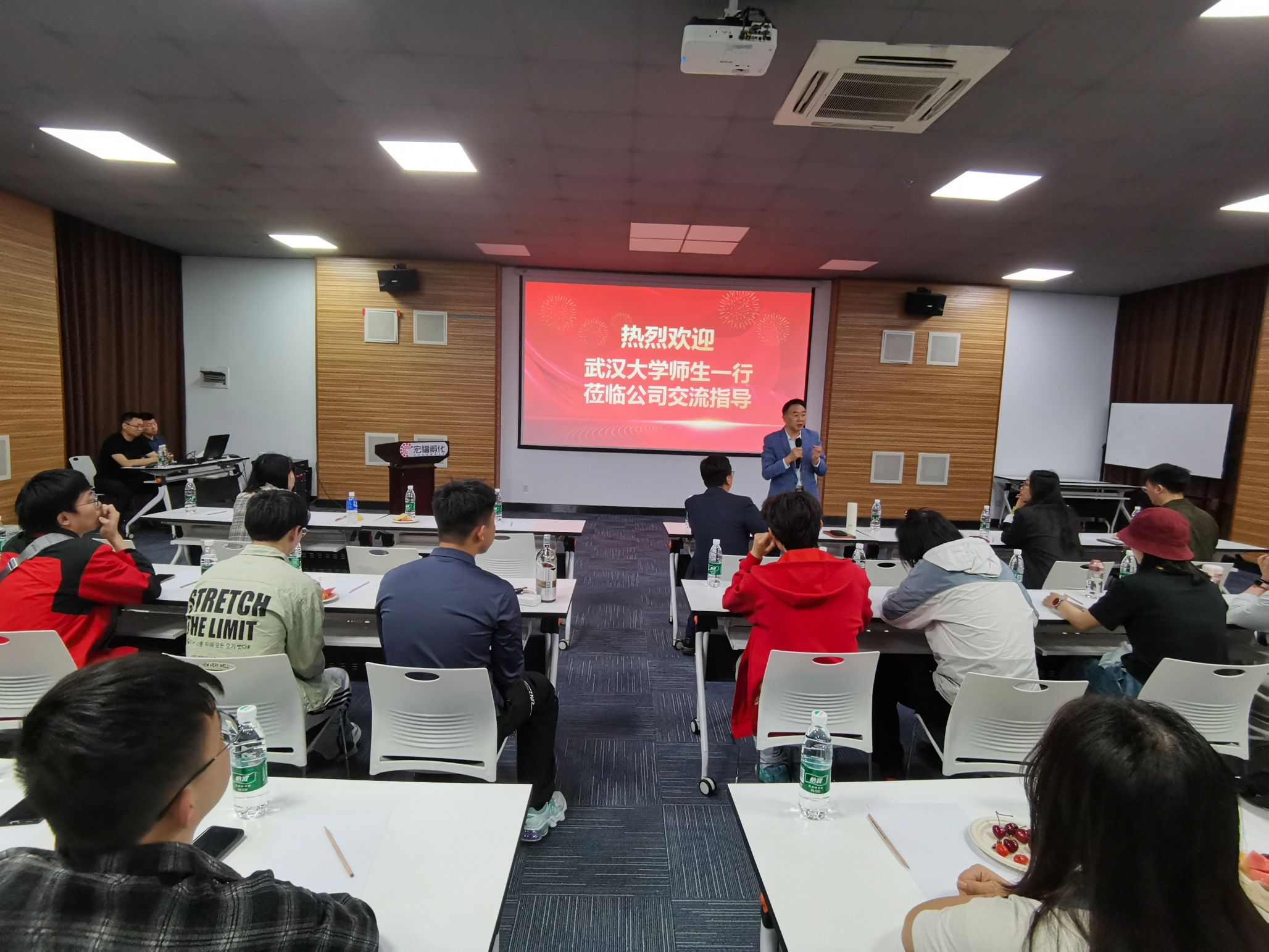4月27日上午,师生们参观了由武汉大学校友周晓奉先生创立的北京睿格致科技有限公司。这家以“土建数据可视化”为核心竞争力的科技创新企业,充分展示了数学在实际应用中的巨大潜力与广阔前景。在企业成果展示交流会上,师生们亲身体验了该公司自主开发的BIM(建筑信息模型)软件如何将复杂的工程数据转化为清晰直观的三维动态影像。同学们不仅惊叹于科技进步带来的便利,也深入了解了企业与高校合作的多种可能性。