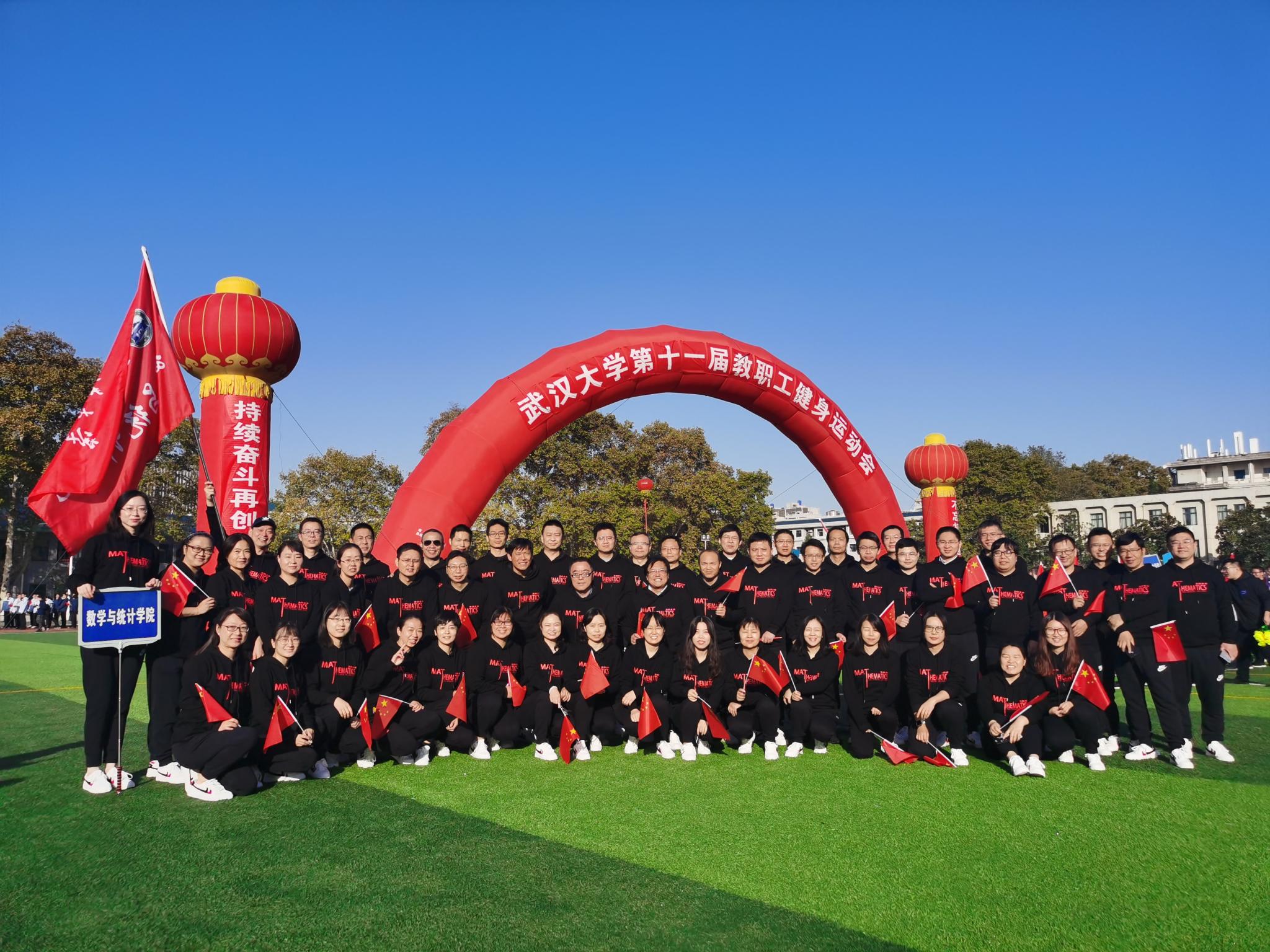 2019年11月15日,武汉大学第十一届教职工健身运动会在桂园操场隆重举行。“唯我数院,百科之先,纵横古今,包罗万千!”伴随着嘹亮的口号,由55名数院教职工组成的运动员方阵在院长赵会江,副院长吴蜀江、院党委副书黄安云的带领下迈着整齐的步伐,意气风发地走过主席台,为激动人心的运动会拉开了序幕。