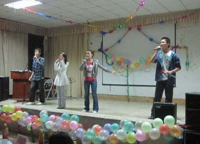 本场晚会的互动性极强。主持人组织了抢椅子的游戏,在此这之后又向同学们发糖并做起了另类的“数学游戏”。台上的同学玩得不亦乐乎,台下的同学看得不亦乐乎。游戏虽然简单,但却调动起了全场的气氛。