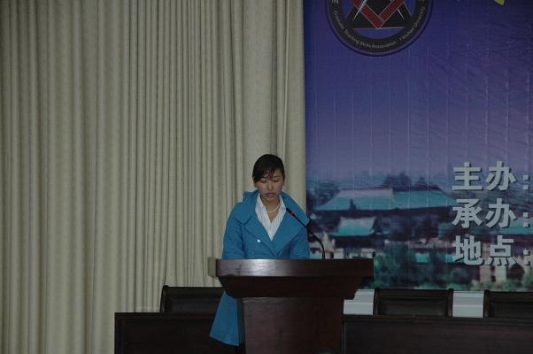 2009级硕士研究生刘梦莲致辞,她代表全休会员对关心和指导教研会成长的领导和老师表示了真诚的谢意,并对教研会的性质、章程、前期工作成绩进行了介绍,对今后工作进行了具体展望。