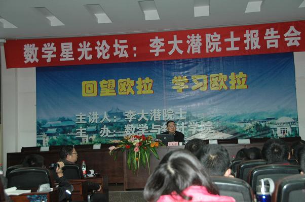 2010年11月15日晚,著名数学家李大潜院士应邀走进武汉大学研究生“数学星光论坛”,为武汉大学师生带来了一场题为“回望欧拉,学习欧拉”精彩学术讲座。报告会由海角社区