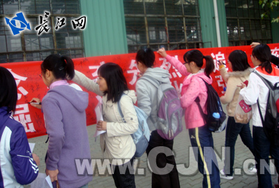 阳光明媚,一扫前几天的潮湿与阴霾,同学们早早的来到了桂园风雨操场。10点半左右,横幅展板传单问卷全部就绪,趁着片刻的闲暇,大家迫不及待地在横幅上签上了自己的名字,并邀请过路师生加入进来。不到12点,7米多的横幅上已经签满了名字,1000份传单也发放一空。据悉,签满名字的横幅将送往武汉市纪念辛亥革命武昌首义100周年官方办公室。