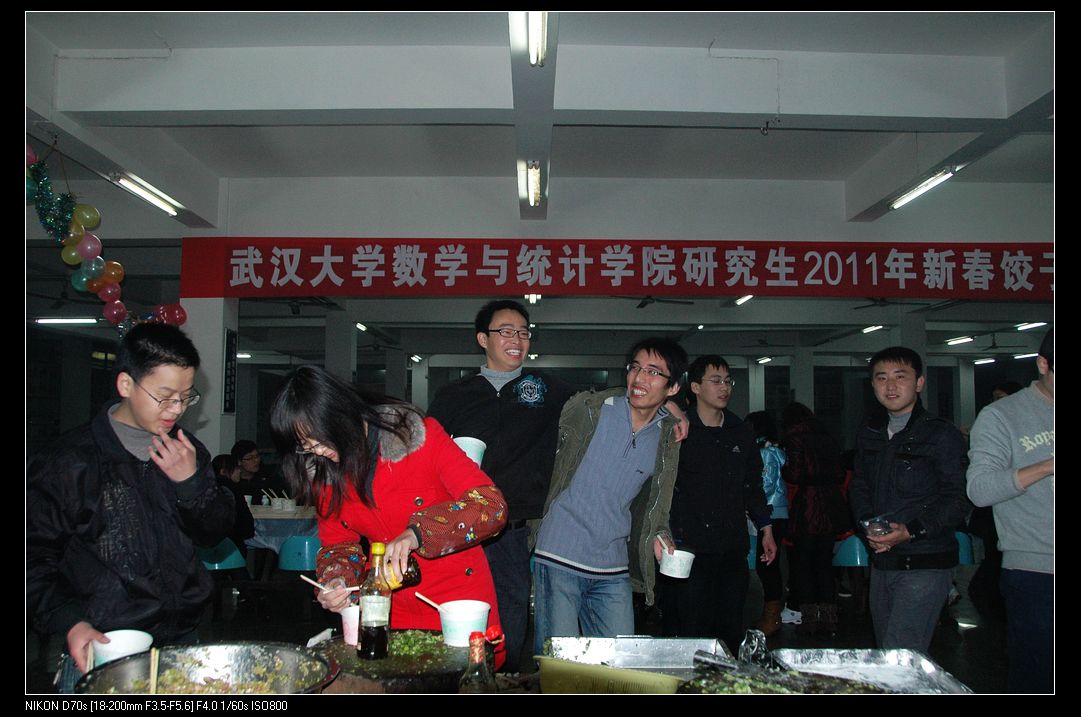 研究生欢聚弘博大餐厅开展了一场别开生面的新春饺子DIY活动,学院党委副书记梁涛和学院学生工作办公室副主任王忠海老师也一起加入到2010级研究生们中,和大家共同度过了一个温馨热闹的夜晚,并为研究生们送上新春祝福。此次活动由学院研究生生活部主办,学院第九届研究生会主席褚召辉也代表2009级学长学姐参加了活动。