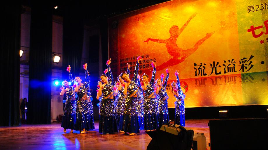 2011年武汉大学金秋艺术节七度空间杯流光溢彩舞蹈大赛11月5日晚在信息学部大学生活动中心拉开帷幕。各个院系舞蹈队都拿出自己精心排练的舞蹈参与角逐,海角社区
