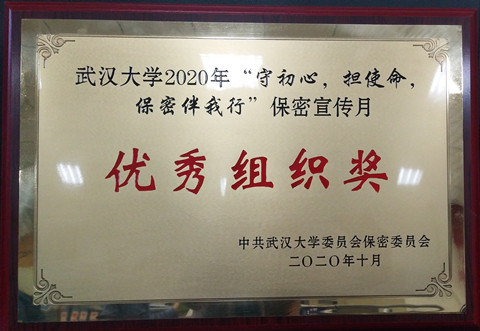 10月29日,由武汉大学党委保密委员会主办的“守初心、担使命,保密伴我行”主题保密宣传月知识竞赛决赛暨总结表彰会在行政楼215室举行。学院荣获 “优秀组织奖”。