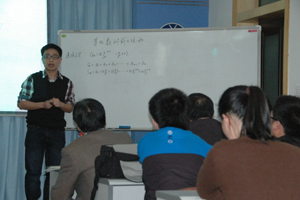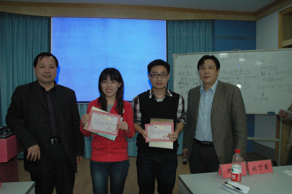 最终,2011级基础数学硕士班的田茂清同学和2011级概率统计硕士班的方莉同学荣获一等奖,拿到了第七届湖北省高校研究生数学讲课比赛的入场券。王中媛、王伟晶、孙巧获得了二等奖和马丽丽、卢俊红、罗庆、付倩同学分别取得了三等奖。赛后,田茂清、方莉将进行全面训练,以准备即将于近期举行的第七届湖北省高校研究生数学讲课比赛。