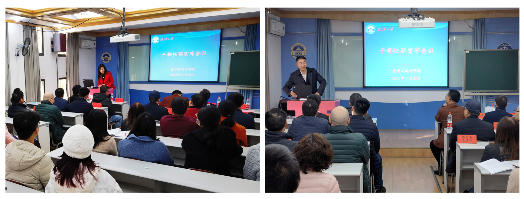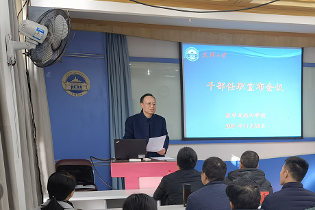 ,宣布干部任职。院党委书记左军主持会议。全体院党政领导、各系及在职教工党支部负责人、各办公室老师、本科生代表参加会议。