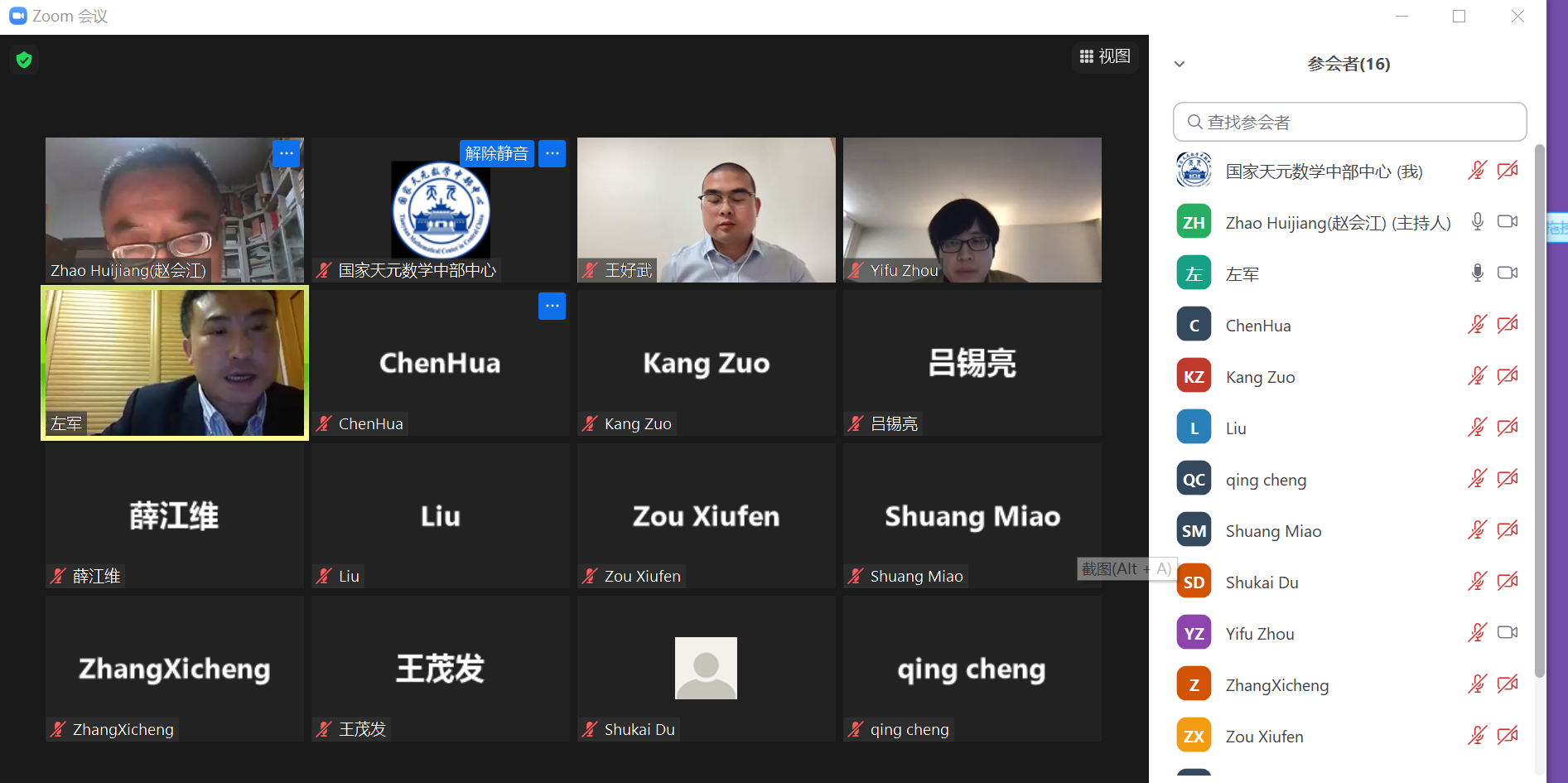 举办武汉大学第九届国际交叉学科云论坛数学分论坛活动。五位海外青年学者,院党委书记左军、院长赵会江等院领导,海角社区