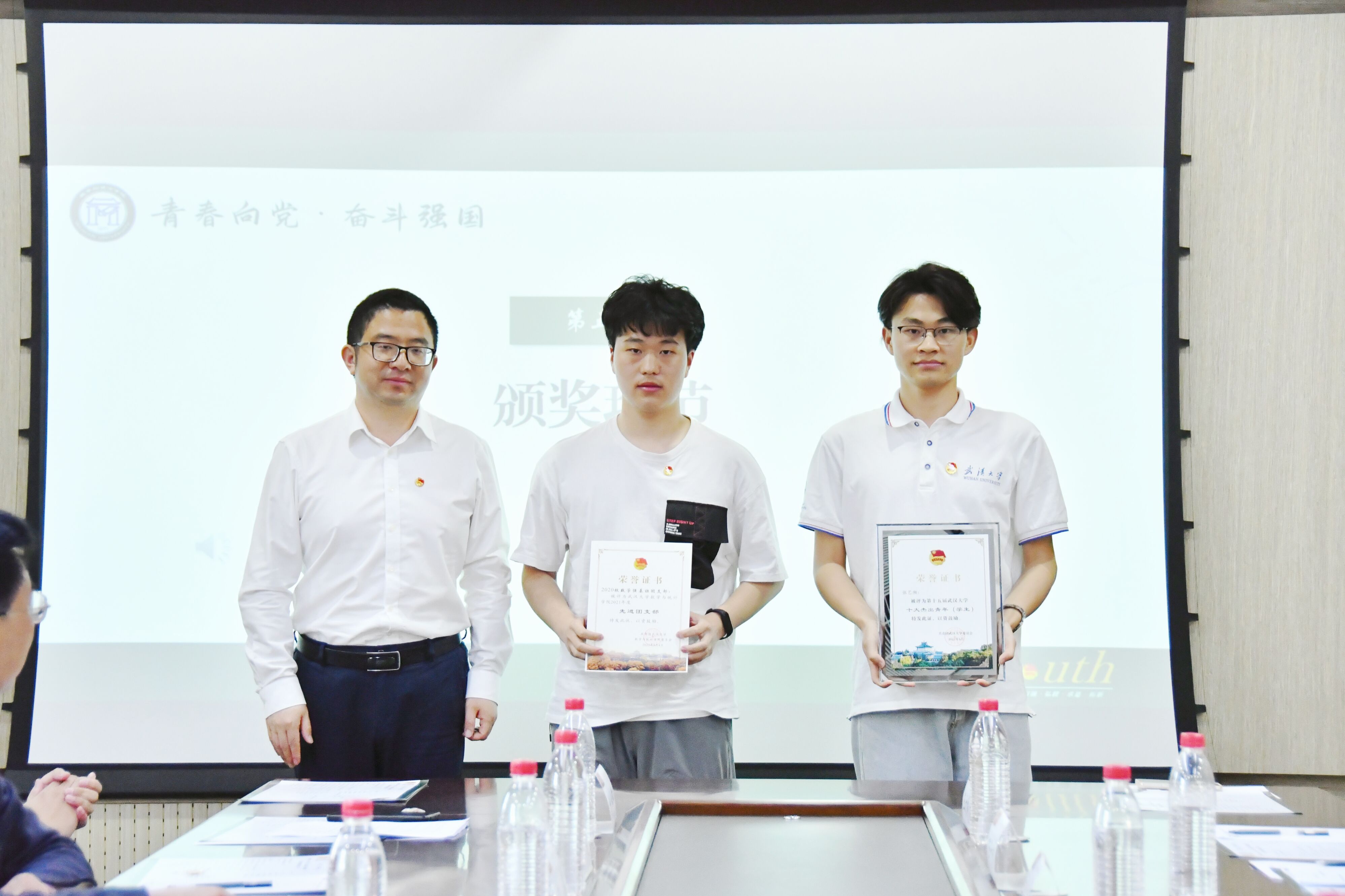 湖北省学联主席、2021 级硕士生蔡展晖分享其参加“大学生志愿服务西部计划”的经历和心得,表示勇担时代重任,不负韶华努力进取。