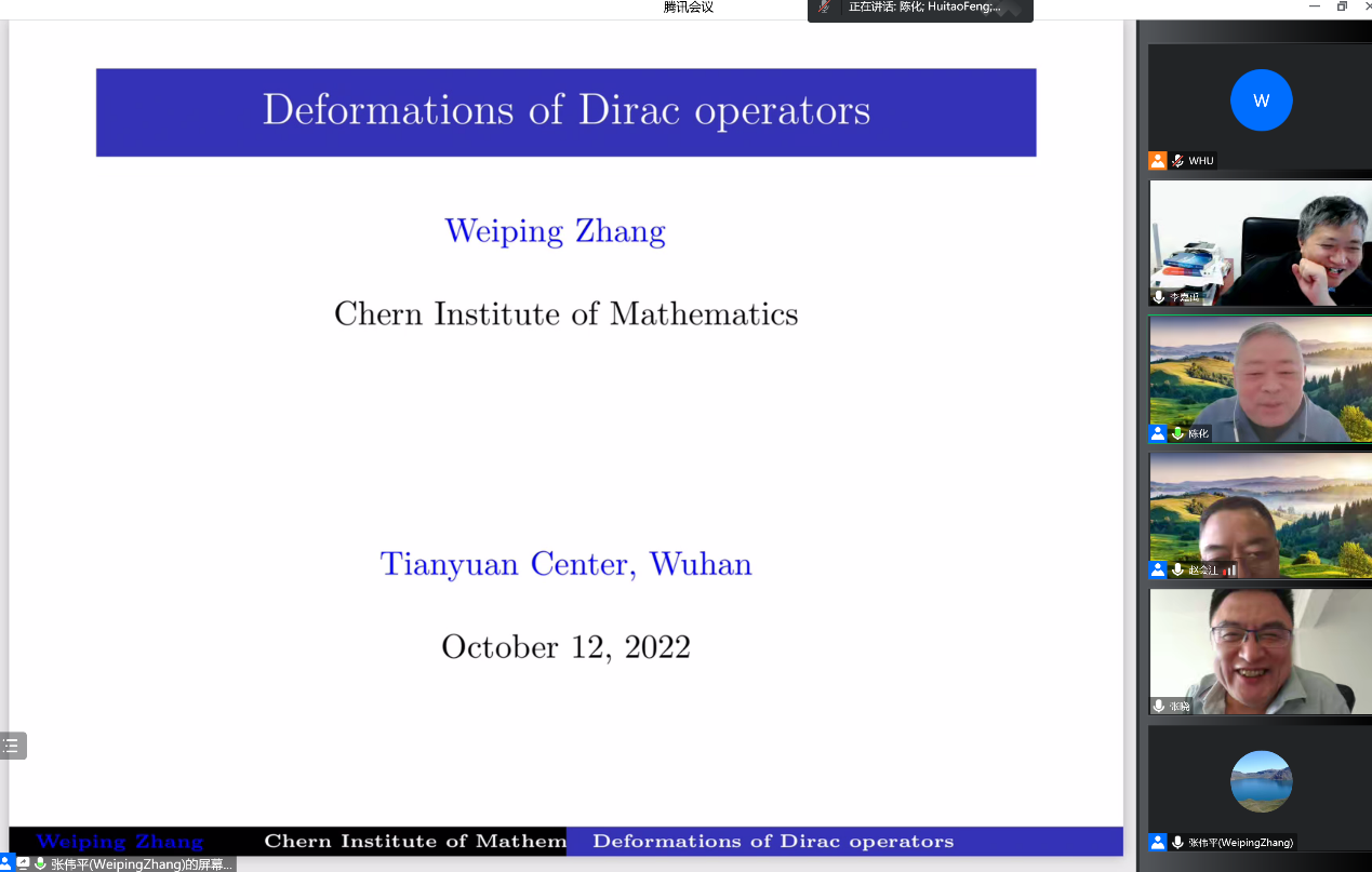 讲学,在国家天元数学中部中心作题为“Deformations of Dirac Operators”的线上Colloquium学术报告。来自日本和欧洲以及国内多位著名专家学者近300人踊跃参加,海角社区