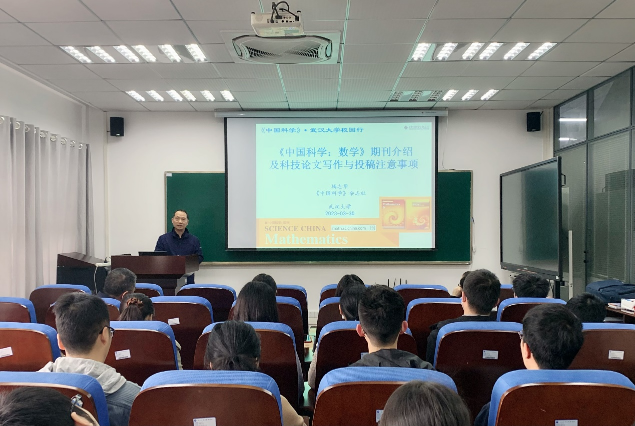 据悉,此次报告会是《中国科学》走进武汉大学活动的一部分。《中国科学:数学》由中国科学院主管、中国科学院和国家自然科学基金委员会共同主办,分为中文和英文两个版本,是我国最具影响力和代表性的数学综合性学术期刊,期刊追踪数学发展前沿,展示重要科学突破,促进交叉学科研究。其中文刊是核心期刊,同时被Scopus等数据库收录;英文刊被SCI、Math Review、zbMATH等收录,入选“中国科技期刊卓越行动计划领军期刊项目”等。