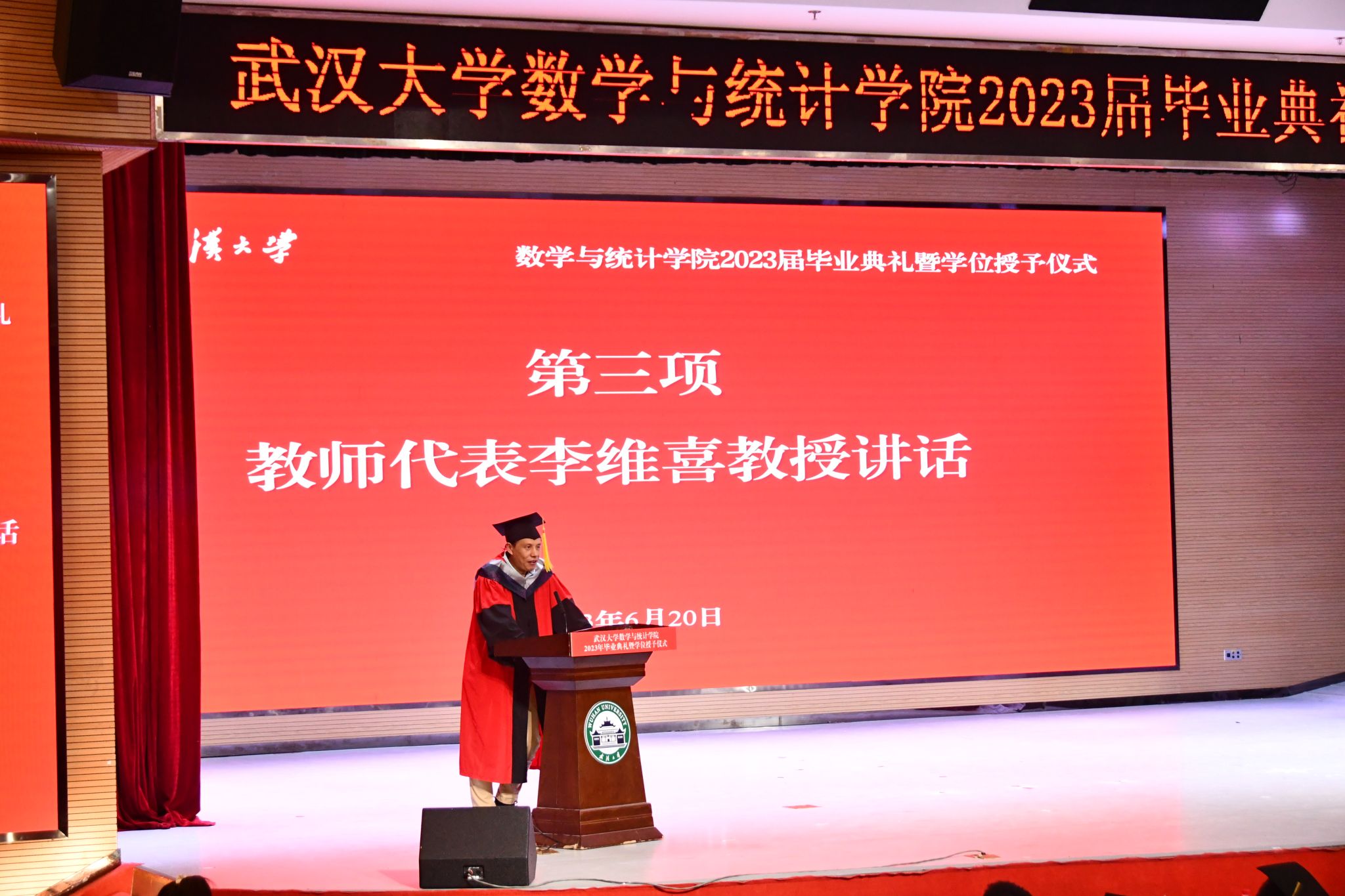 李维喜代表学院教师讲话,希望同学们在科研中静心坚持,在社会的喧嚣中淡泊名利,在各个行业务实工作,发出自己的亮光,展现数院人的风采�