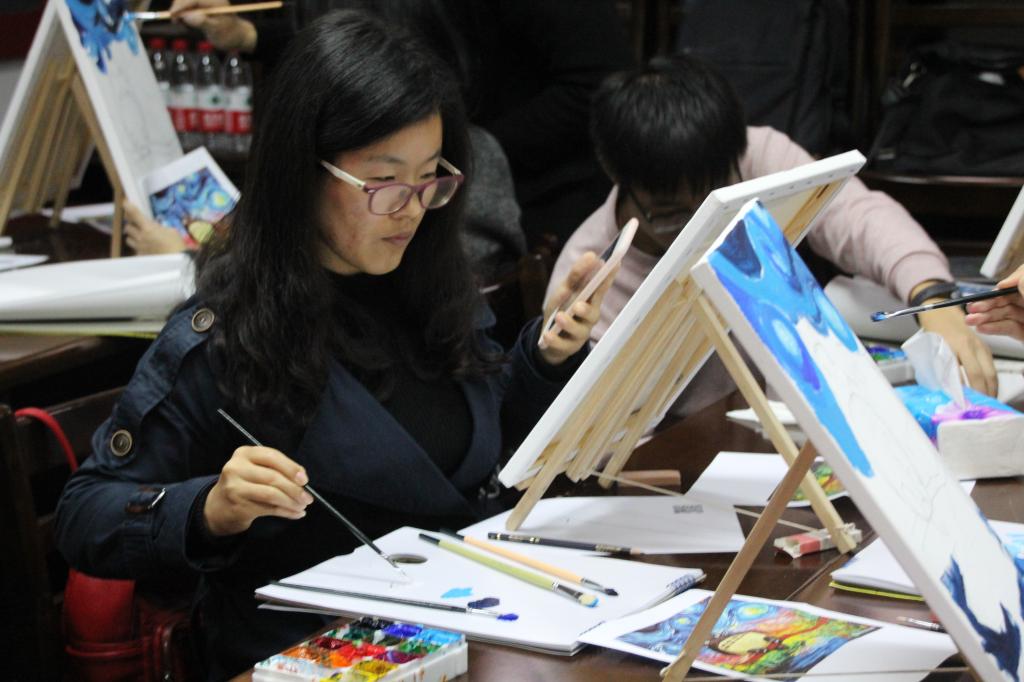 2015级本科生黄同学说:“画画的时候很解压,因为专心画画的时候不会去想其他烦恼的事情,让自己变得很平静。”