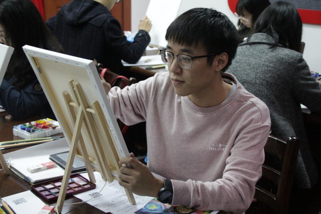 来自经济与管理学院2017级博士生王同学说:“刚开始画的时候这里画一点那里画一点,整体把握得也不是特别好,后来慢慢地熟悉了,调色也调得越来越好了,以前没有画过这种画,完全是一次全新的体验。