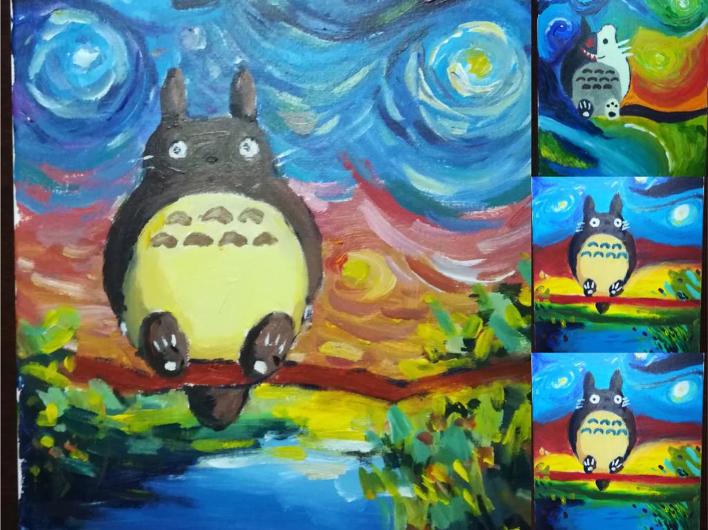 报名的同学大多是对绘画具有浓厚兴趣,所以真正拿起画笔开始绘画时,同学们显得有些兴奋。大家先用较为理性的方式将龙猫的大致轮廓用铅笔绘出,如通过对折纸张的方式找出龙猫在图中的位置,再以合适比例用铅笔将其草图勾勒。再用比较感性的思维为背景填充颜色,其中要注意颜色的深浅渐变,龙猫身上的阴影及细节。同学们在这过程中认真作画,乐在其中,并创作出了不少优秀的作品,下面我们一起来欣赏一下吧: