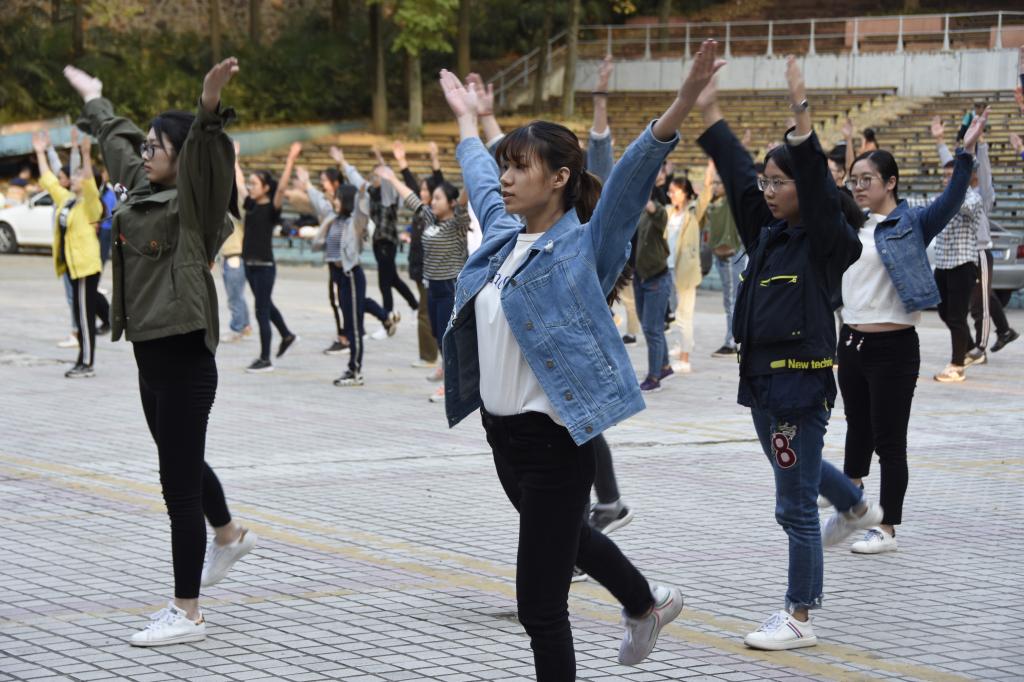 最后上场的是2016级的同学们。作为本次比赛中的“老学长”与“老学姐”,他们的每一个动作更加用力,满含对胜利的信心。第三年站在这里做操,悠悠岁月如此走过,这样的比赛似乎已经成为了一种情怀,他们在这其中享受着比赛,也表现着他们一贯优秀模样。