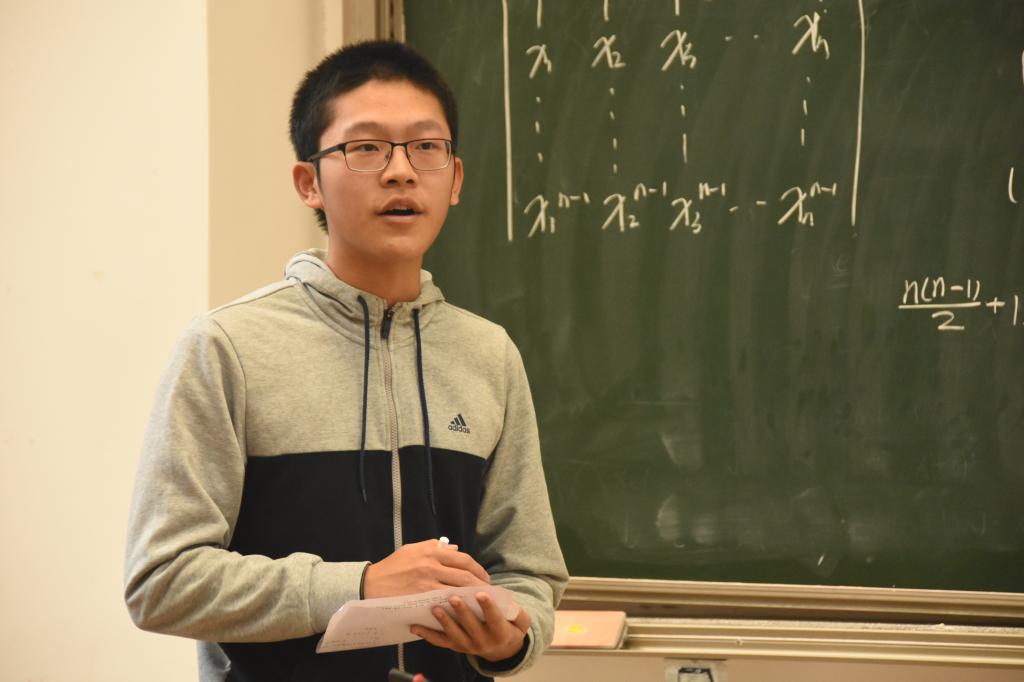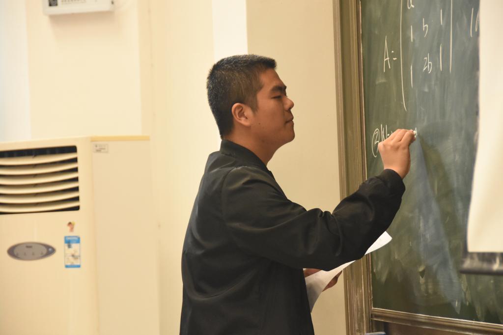 二班数分组袁继超同学从证明题的难点讲起,指出证明题的特点在于条件的等价变换或适当弱化,再具体到题目进行解说。张兆一同学形象地运用定理进行分析,金佳薇、何滢两位同学举出具体数列进一步解读,其中金同学用形象的比喻让大家从冗杂的数学语言中跳脱出来,明晰思路。二班高代组杜睿淼、罗远晖两位同学分工明确,讲演与板书配合得当,并在完成求解后主动进行延伸拓展,并从不同角度重新审视问题,简化了证明过程。