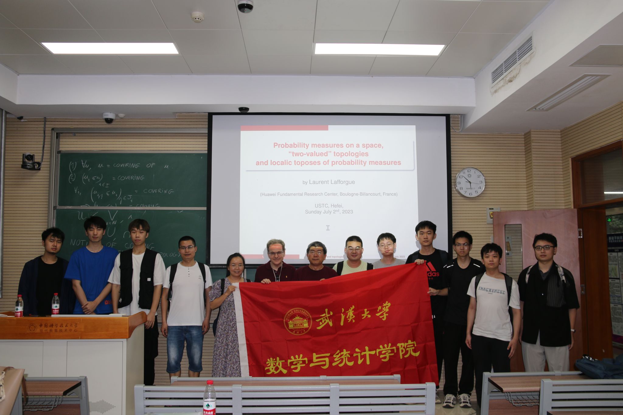 与会同学表示在学术交流中收获满满。通过本次学习,强基班李佳林同学对作为笛卡尔范畴的Grothendieck拓扑有了更深入的了解,对图像转化为逻辑语言有了更清晰的认识。强基班朱超俊同学觉得这次近距离瞻仰数学大师风采,让他深受感染和启发。弘毅班宗帅同学表示Laurent Lafforgue教授深入浅出的报告不仅让他加深了对数学概念的理解,也引发他对数学的思考。弘毅班陈宇轩同学被现场浓厚的学术氛围感染,进一步加深了对拓扑和概率测度研究方向的认识。强基班刘昊然同学对Laurent Lafforgue教授与AI工程师的合作之旅印象深刻,对于数学研究推动科学发展有了更深入的了解。博士生刘家辉同学认为学术创新不仅仅是本领域的一个成果,它更是人类理解世界、探索世界的一种新的模式,它将在许许多多的领域发挥出人们意想不到的作用。这次学术交流激励同学们在数学学术探索的道路上继续努力前行。