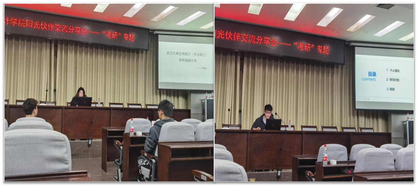4月7日下午16:30,新一季阳光伙伴交流分享会在数学会堂顺利举行,本期关键词为——考研,主讲人为应用统计专业硕士卢可欣和基础数学学术硕士李朝柱。阳光伙伴交流分享会由学院本科生党支部联合筹办,本次会议由统计学专业党支部党员邓凌云主持。