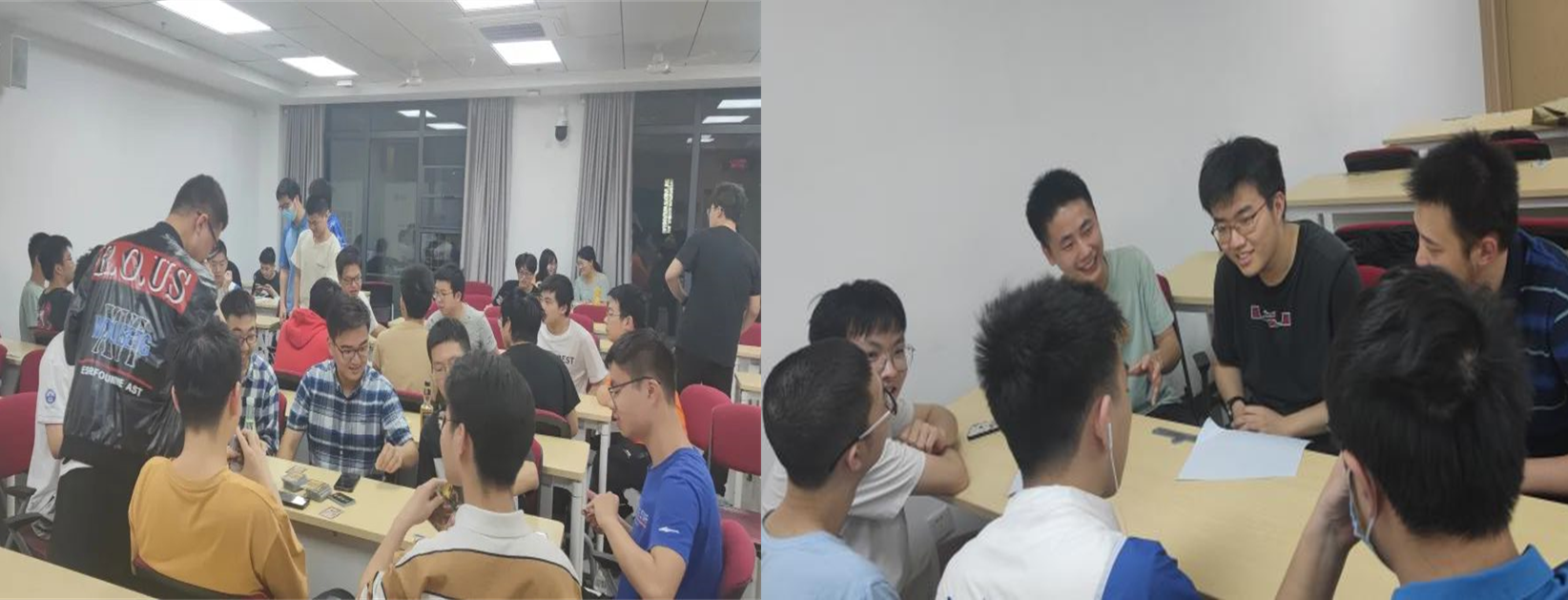 在主持人介绍本次活动的主题和内容后,同学们分组展开活动,画画接龙、纸牌游戏、信任游戏、逻辑推理等多种类别活动供同学们自由选择,并有经典的真心话大冒险为各组收尾,同学们或纯真快乐,或烧脑刺激,在游戏中放松,在欢笑中深入了解彼此,每个同学都积极参与,暂时逃离“一地鸡毛”,给疲惫的心灵放个假,为心情电池续满航,昂首面对新一天的挑战!