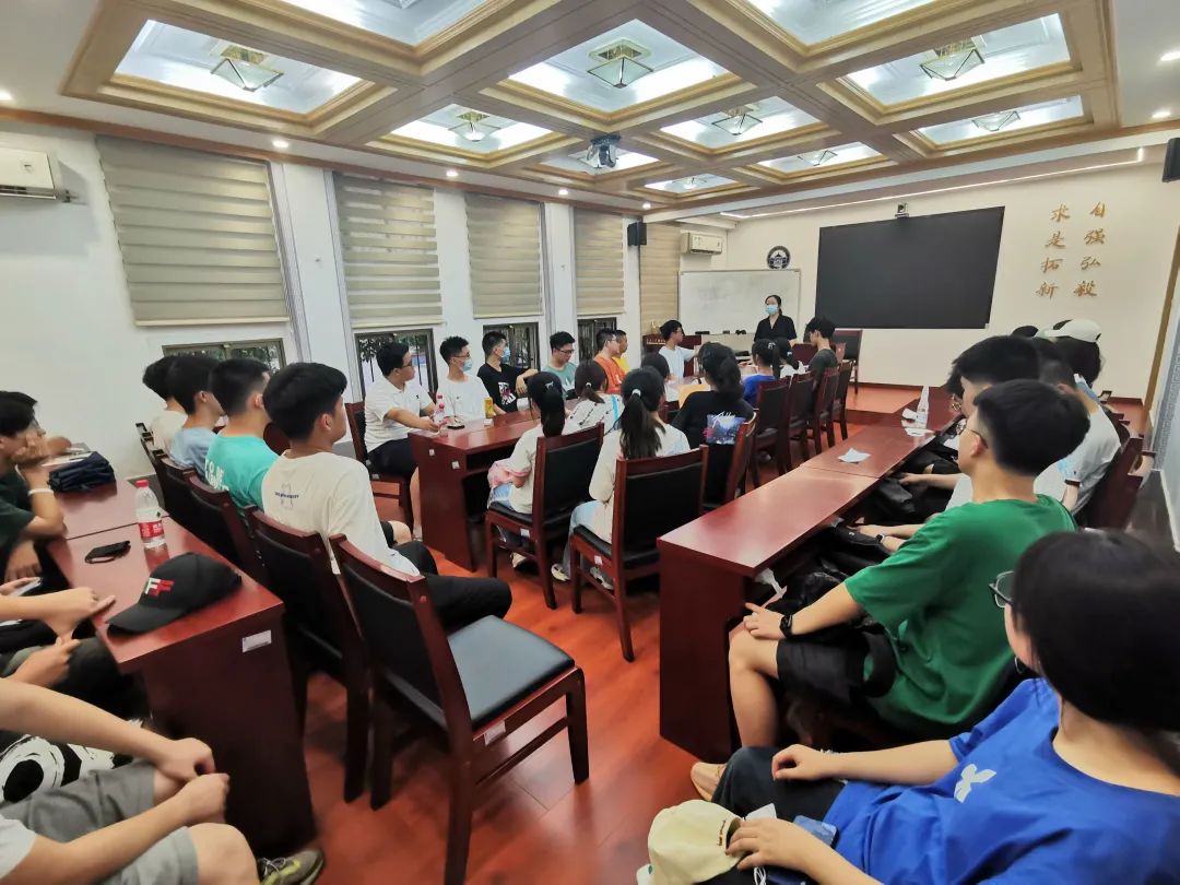 二班班会在理学楼东北楼209报告厅召开。同学们自我介绍,讲述自己如何与数学结缘,气氛欢快热烈。班级导师张灿分享了自己在武大求学的经历,要求新生多花时间学习数分高代,减少游戏时间,多多参加体育运动。助班徐建超鼓励新生参加学院体育社团,通知了后续时间活动安排。