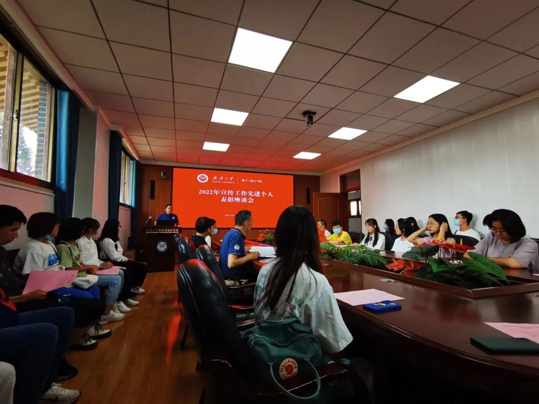 2022年学生宣传工作先进个人表彰大会在院楼三楼会议室召开。出席此次会议的有院党委副书记汪思明,院团委书记刘宇晖,院团委副书记(学生)邱嘉诚,全体获奖同学以及院团委宣传部、院新媒体中心全体成员。
