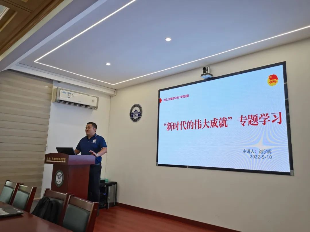 22级4班于院楼205召开第一次团会会议,组织共青团员开展以“新时代的伟大成就”为主题的专题学习。会议由院团委书记刘宇晖主讲,2022级4班团支部全体同学参加学习并讨论、发言。