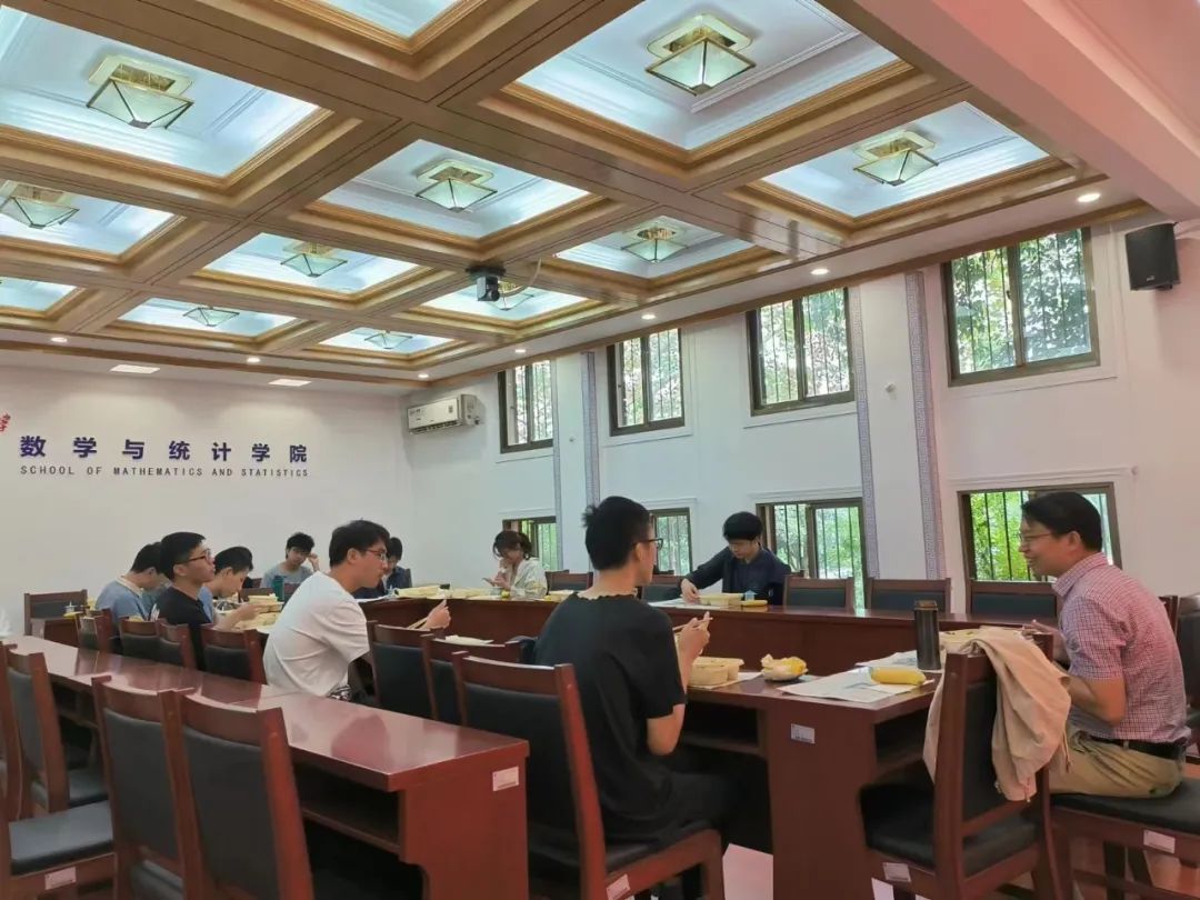 同学们与尹万科教授一起共进午餐。尹万科教授就同学们如何理解课本,研究生如何选择方向,遇到听不懂的课程怎么处理,数学前景方向和找工作的四条主要去路等方面与大一大二大三的同学们进行了友好的交流与解答。