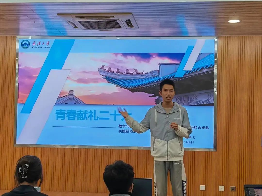 接下来分享的是来自“数院暑期赴恩施宣恩青春献礼二十大实践队伍本研联合组队”的屈鹏飞同学。在分享过程中,屈鹏飞同学提到,在经过基层实践后团队成员们意识到,基层工作人员不仅要做到以理服人,同时还应具备灵活处理事件的工作能力,这样才能做到于情于理都能让人心服口服。此外,实践队在本次实践过程中还将本专业理论应用于实践,从搜集各方数据到进行专业的数据分析,为两院同学提供了优秀的实践范例。