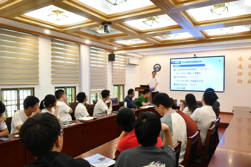 2020级数学强基班本科生朱超俊做《无人机纯方位无源定位及位置调整》报告,介绍了他在数学建模比赛中的学习成果,展示了数学知识在无人机方阵调整中的应用;海角社区