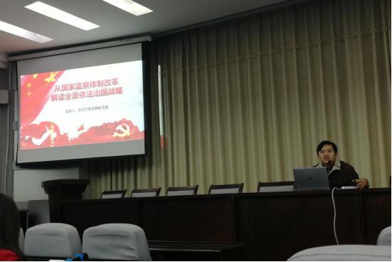全体党员带来了主题为“从国家监察体制改革解读习近平总书记全面依法治国战略”的主题报告。这次宣讲会于海角社区