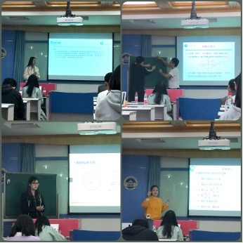 主持人讲解比赛评分规则后,讲课比赛正式开始。参加本次比赛的8名选手赛前通过抽签决定出场顺序,四人一组,每组讲课结束后,评委进行点评。参赛选手可采用多媒体、板书等多种形式,每人讲课时间限定10分钟。每位选手都从初高中数学选取一个较重点内容进行讲解。选手们结合生活实例详细直观地讲解知识点,灵活运用于例题,再通过例题充分理解知识点。过程中不时与学生互动,调动课堂气氛。