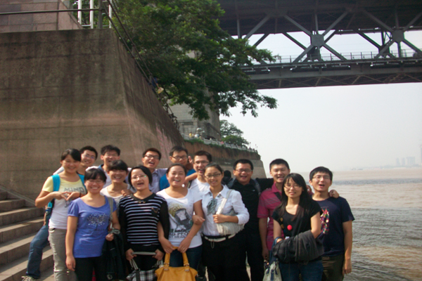 不得不说,天气真得好给力!全班同学本已做好冒雨完成这第一次出游,但是天空却是出奇地晴朗,令人心情舒畅。上午九点多钟,12级计算数学硕士班的全体同学在武汉大学的正大门集合,一起乘坐515到达目的地,在江磊和茆超两位导游的带领下开始了这次愉快的旅行。一路上,大家有说有笑,彼此之间的那种陌生感渐渐消失。不知不觉间已到达长江大桥。滔滔江水,让人浮想联翩。江岸边,有游玩的行人,有钓鱼的老者,还有可爱的孩童。全班同学你一句我一句,抒发着各自内心的喜悦,一张张笑脸就是最好的证明。参观完长江大桥,沿着林荫道向黄鹤楼出发。虽然有点远,但是一路上说说笑笑,不知不觉中到达了目的地。赫赫有名的黄鹤楼,百闻不如一见,同学们都争先恐后地拍照留念!随后,大家漫步在长江大桥上,一路上走走停停,看看栏杆上写的搞笑文字,看看江水中正在奋力游泳的爱好者,享受着户外的阳光!