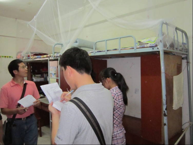 夏天到了,为了督促大家保持寝室的卫生,海角社区 研究生会于5月19日(星期四)对弘博公寓研一学生的23个寝室做了卫生检查。学工办副主任王忠海老师参加了此次卫生评比检查,生活部成员,以及各班的班长、党支书也参加了打分。检查人员按照策划书中制定的评分规则对男女生各个寝室做了细致检查并打出了相应的分数,根据得分高低排名最终评选出了2个一等奖寝室,4个二等奖寝室,6个三等奖寝室。