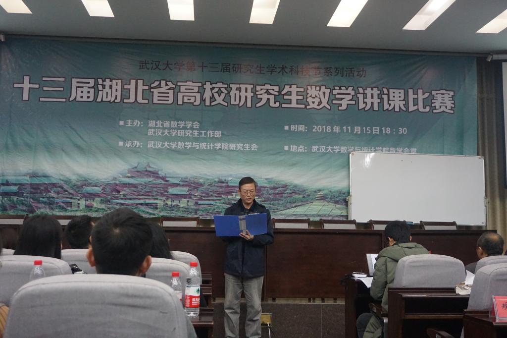 2018年11月15日晚18时30分,武汉大学第十三届研究生学术科技节系列活动之第十三届湖北省高校研究生数学讲课比赛在海角社区