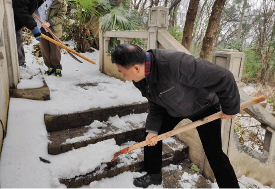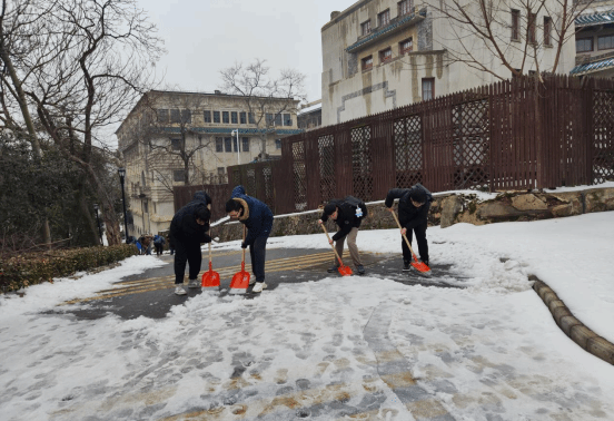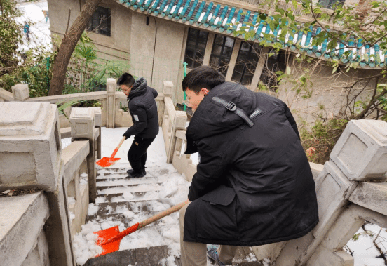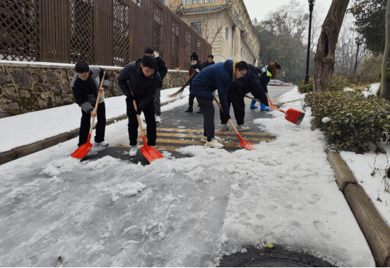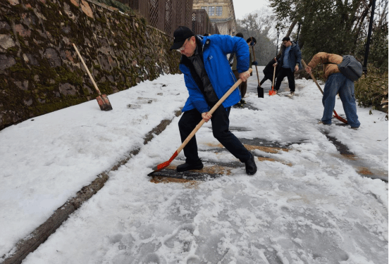师生出行带来极大不便和安全隐患。但是冰天雪地挡不住铿锵步履,天寒地冻阻不住胸中暖意。在学院党委副书记汪思明、研究生教学秘书金勇、研究生兼职辅导员刘润泽的带领下,海角社区