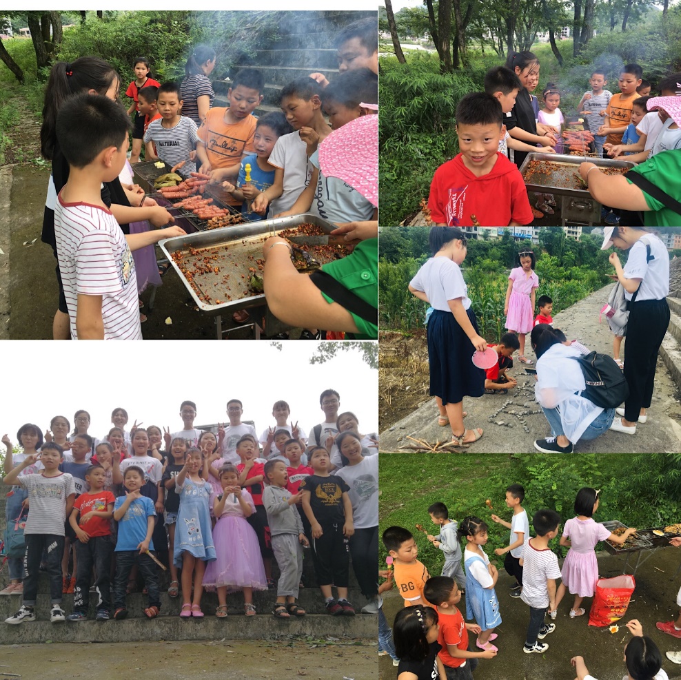 进行户外烧烤活动的那天,队员们和二十名小朋友们在酉河边进行了愉快的户外烧烤活动。孩子们在路上用鹅卵石拼“贝爽”两个字,他们井然有序地排队拿烧烤吃,他们热情地将食物主动分给队员们,他们活泼地参与小游戏,小朋友们的真诚、友善与纯真深深打动了每一位实践队成员,大家一起度过了一段美好的时光。