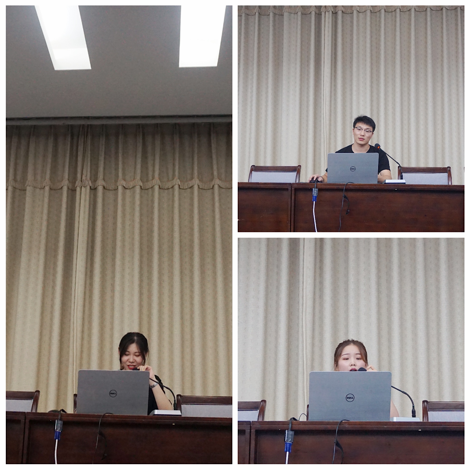 之后是暑期社会实践的展示。第一个展示的是前往杭州的实践队,队伍负责人屈冬冬介绍了暑期参观的公司以及公司在招聘时对应聘人员的技能需求。第二个展示的是前往广东的实践队,队伍负责人程卉在介绍公司情况的同时,也强调了公司的人才的需求,给有意愿到这些公司的学生提供一些思路。第三个展示的是前往恩施的支教团队,负责人何锶源强调支教活动的意义,跟大家分享了在恩施支教的见闻,鼓励大家积极参加类似活动,关爱留守儿童。