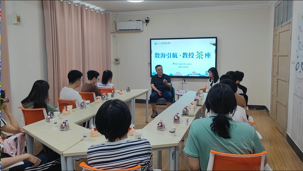On May 21, the second installment of the “Navigating the Sea of Numbers: Professors' Tea Talk” series was successfully held at the “One-Stop” Student Community in Hubin Building 7. This session featured Professor Zhao Huijiang as the keynote speaker, who shared his academic journey, life insights, and understanding of mathematics under the theme “The Beauty of Mathematics and Reflections on Life.” Over a dozen undergraduate and graduate students attended the event, which was hosted by undergraduate student Chen Muyu.